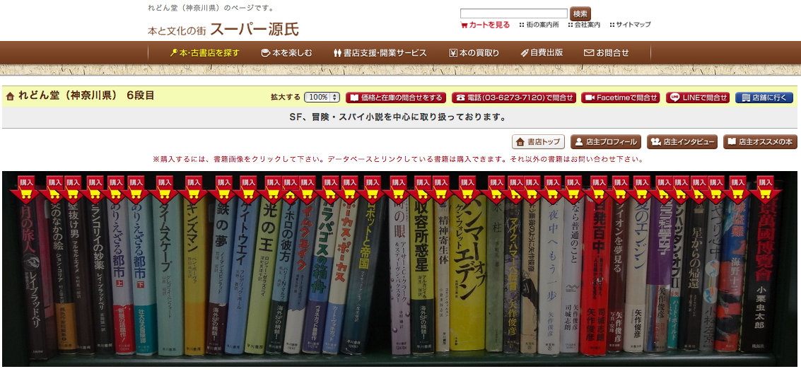 このサービスを利用すると、東京・神保町にあるリアル古書店の書棚写真を見ながら欲しい本を探したり注文することが出来る。